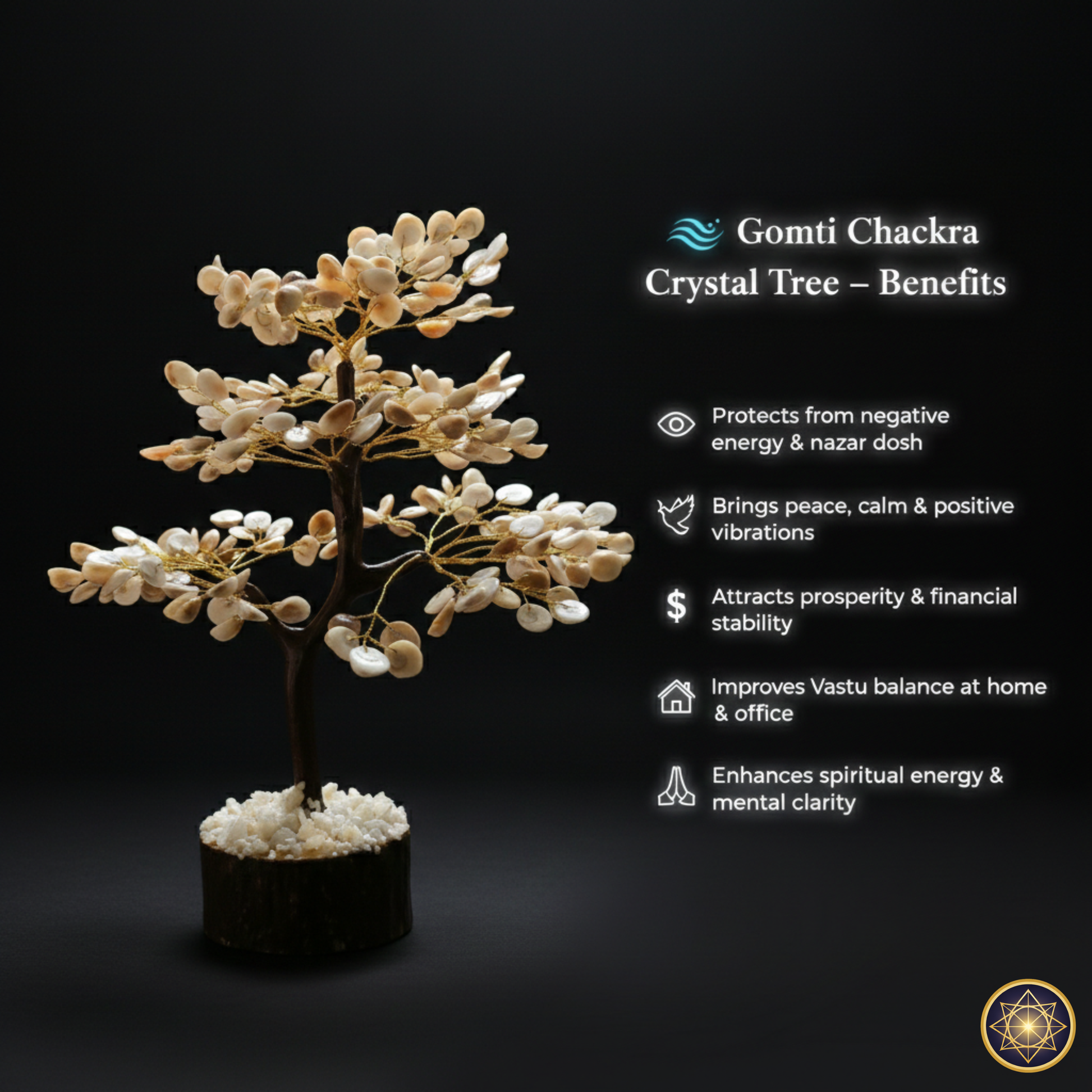 Bring divine energy, peace, and protection into your space with our Gomti Chakra Crystal Tree, handcrafted using 100% natural Gomti Chakra stones. Known in Vastu Shastra as a powerful symbol of Lord Vishnu, Gomti Chakra helps remove negative energy, protect from nazar dosh, and attract prosperity.